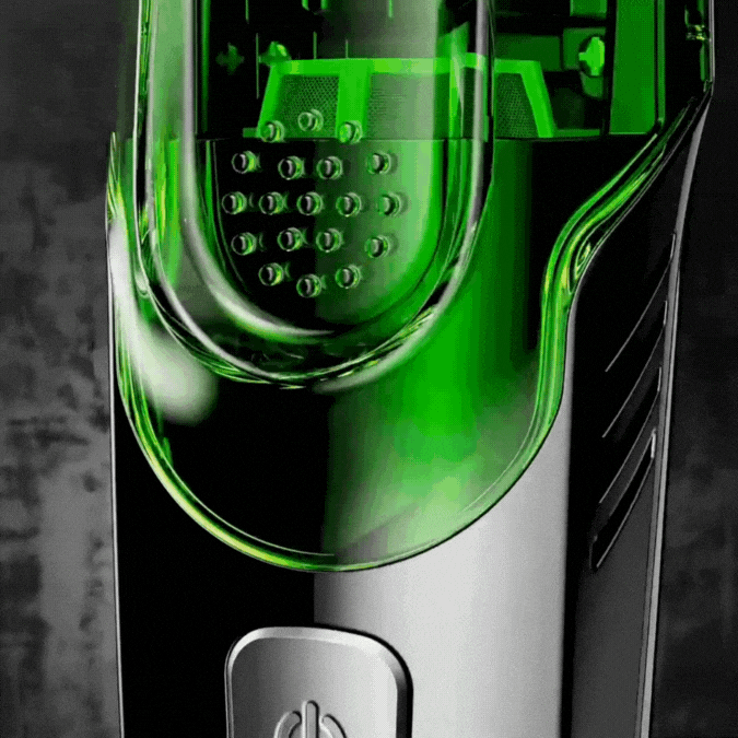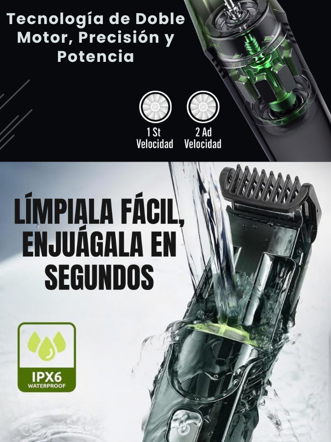 Una afeitadora profesional con succión de pelos y doble motor. Precisa, potente y sin dejar rastro de vello.