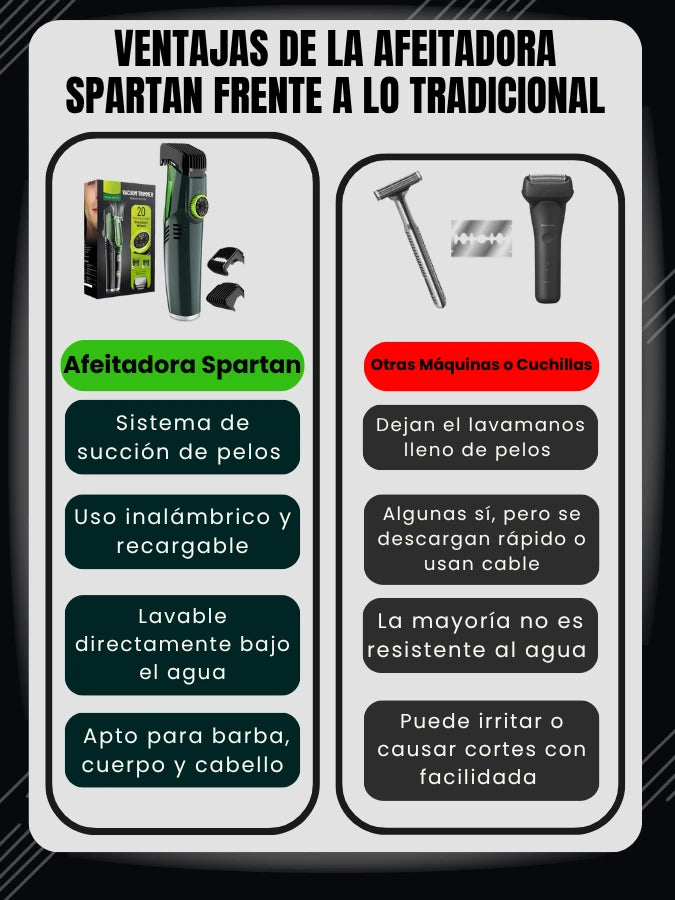 Afeitadora Spartan, succiona pelos al instante.