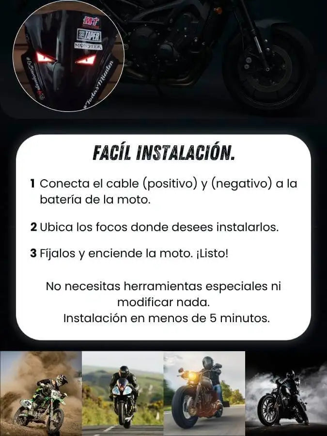 Sí, Demon Eyes™ tiene compatibilidad universal y se puede instalar en cualquier modelo de motocicleta o incluso en automóviles.