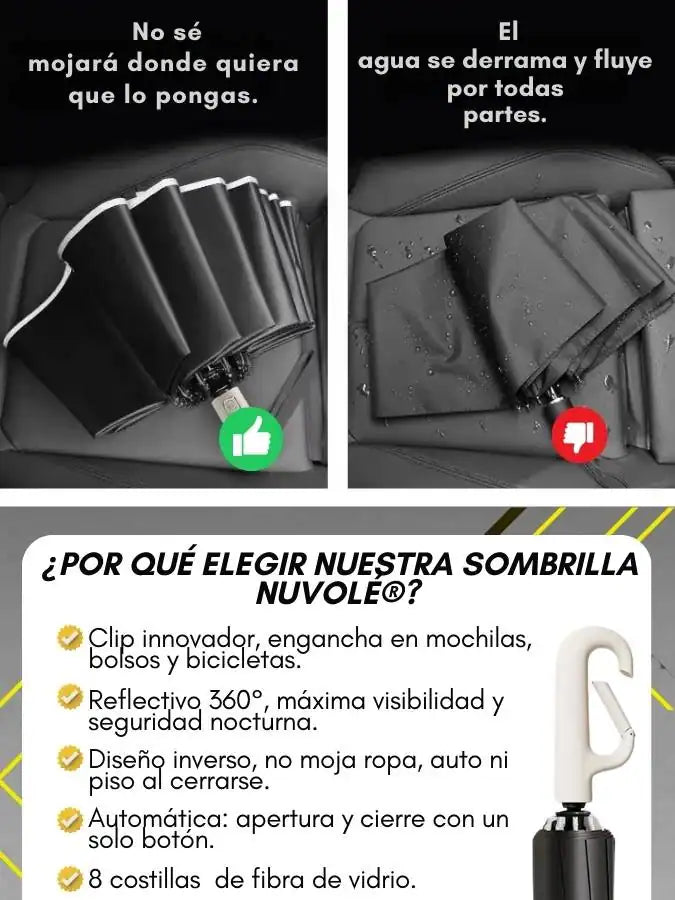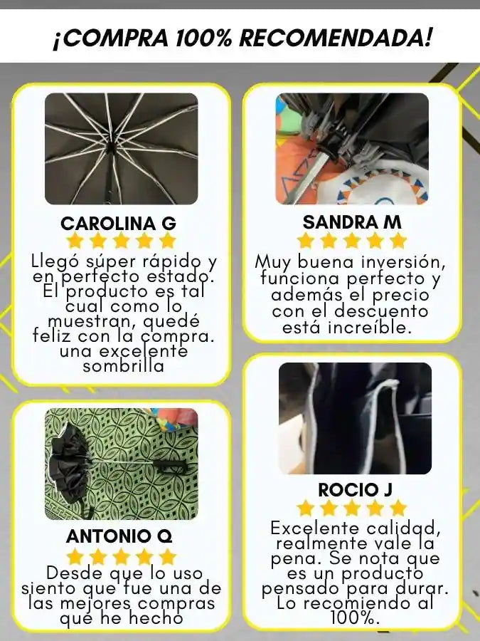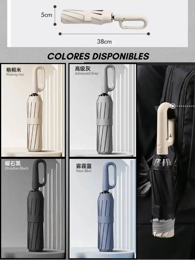 El sistema inverso y automático está diseñado para evitar que la sombrilla se voltee fácilmente con el viento.