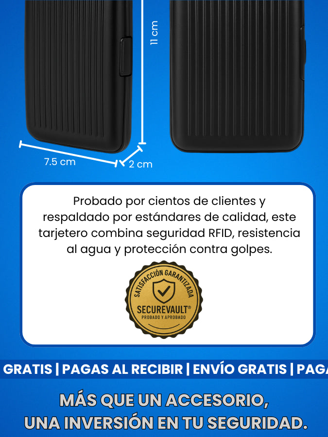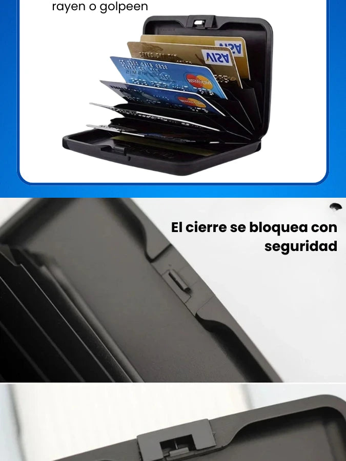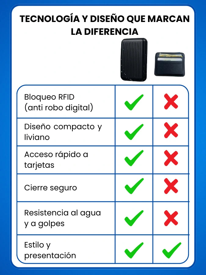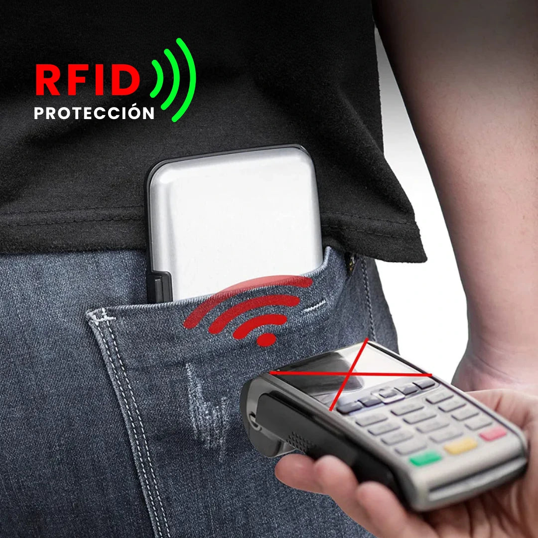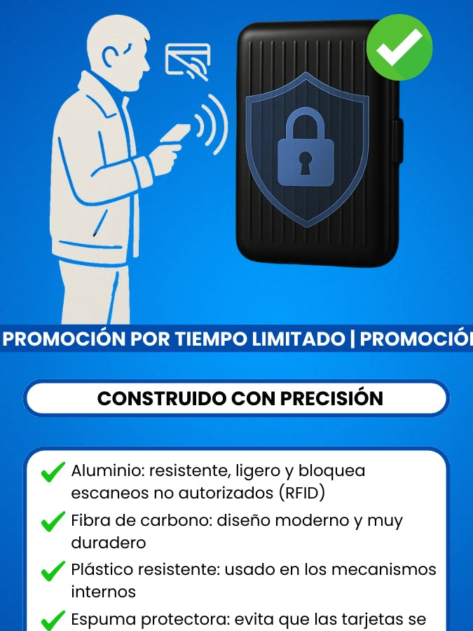 Sí, incluye protección RFID para bloquear escaneos no autorizados y cuidar tu información.