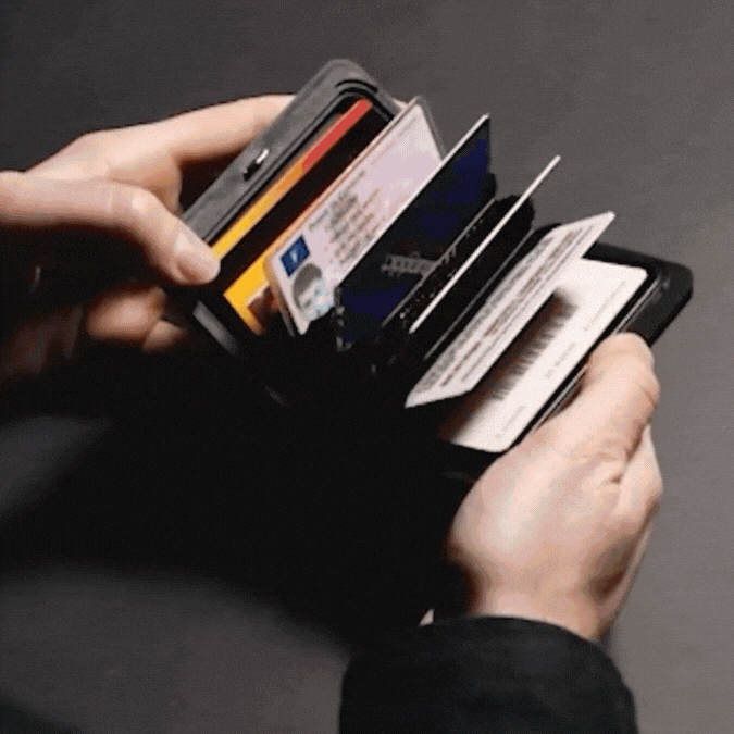 Puede almacenar entre 6 y 8 tarjetas, dependiendo del grosor. Ideal para llevar lo esencial sin abultar.