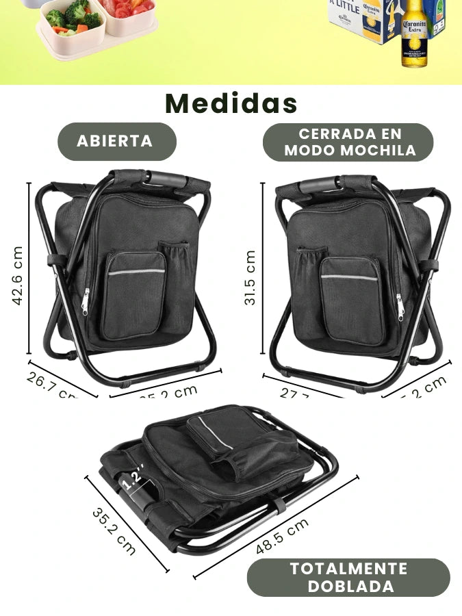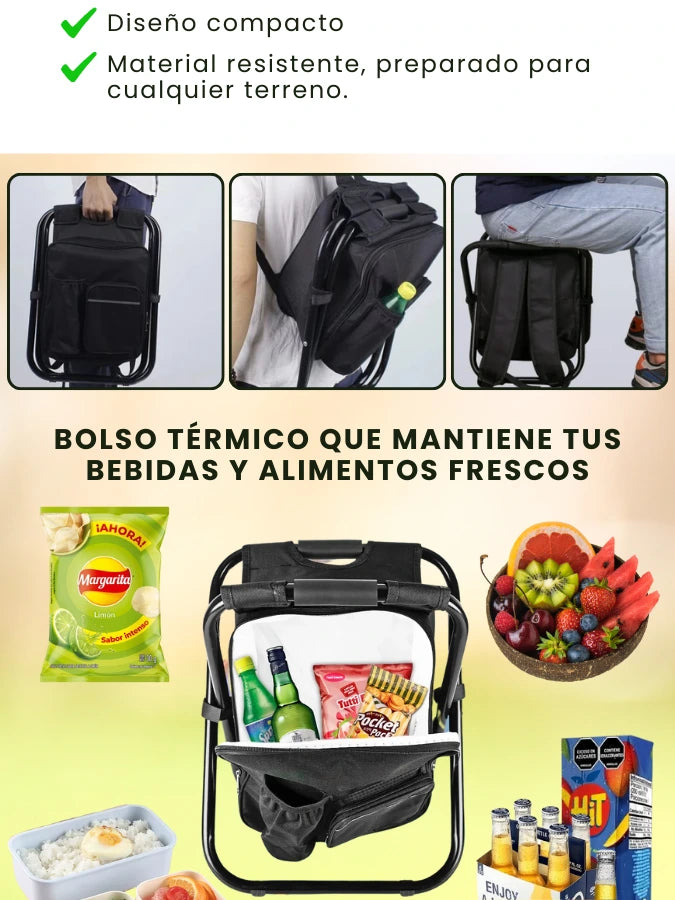 El compartimento principal tiene una capacidad de 13 litros, ideal para guardar botellas, latas, snacks o tu almuerzo.